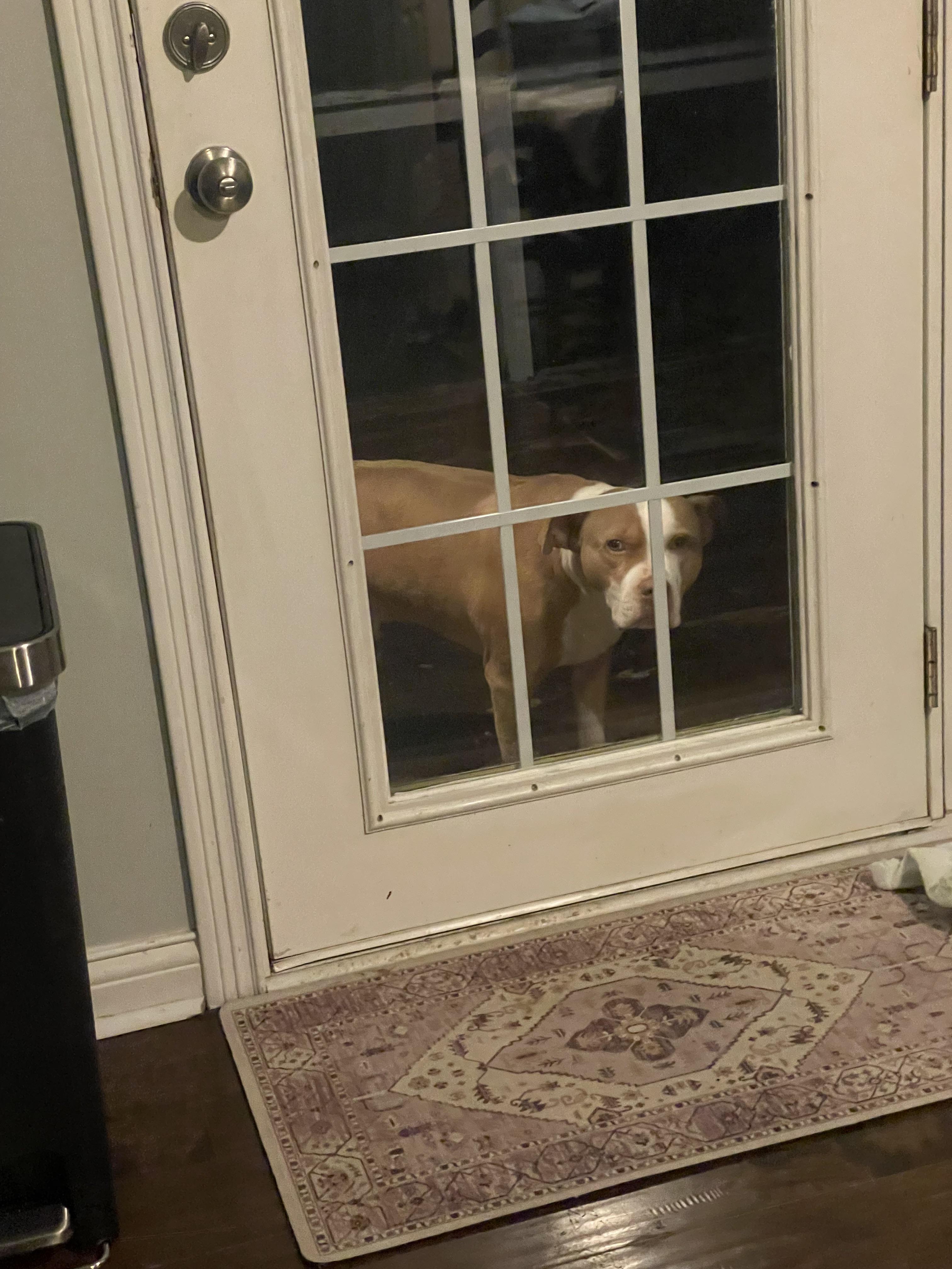 My dog will stand at the door and stare at me the entire time he is outside