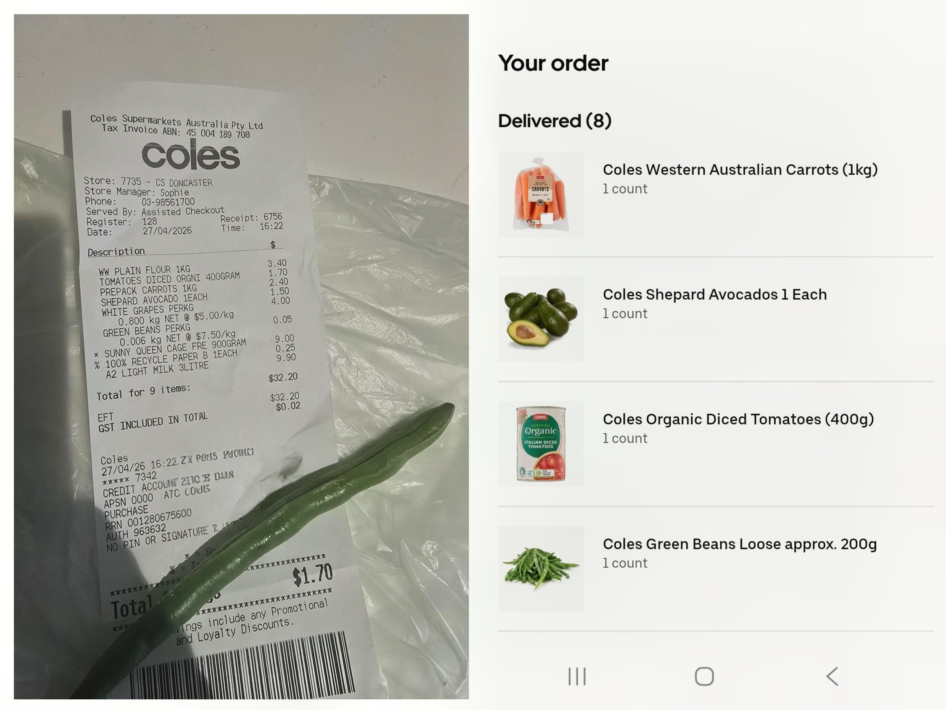 His food order arrived