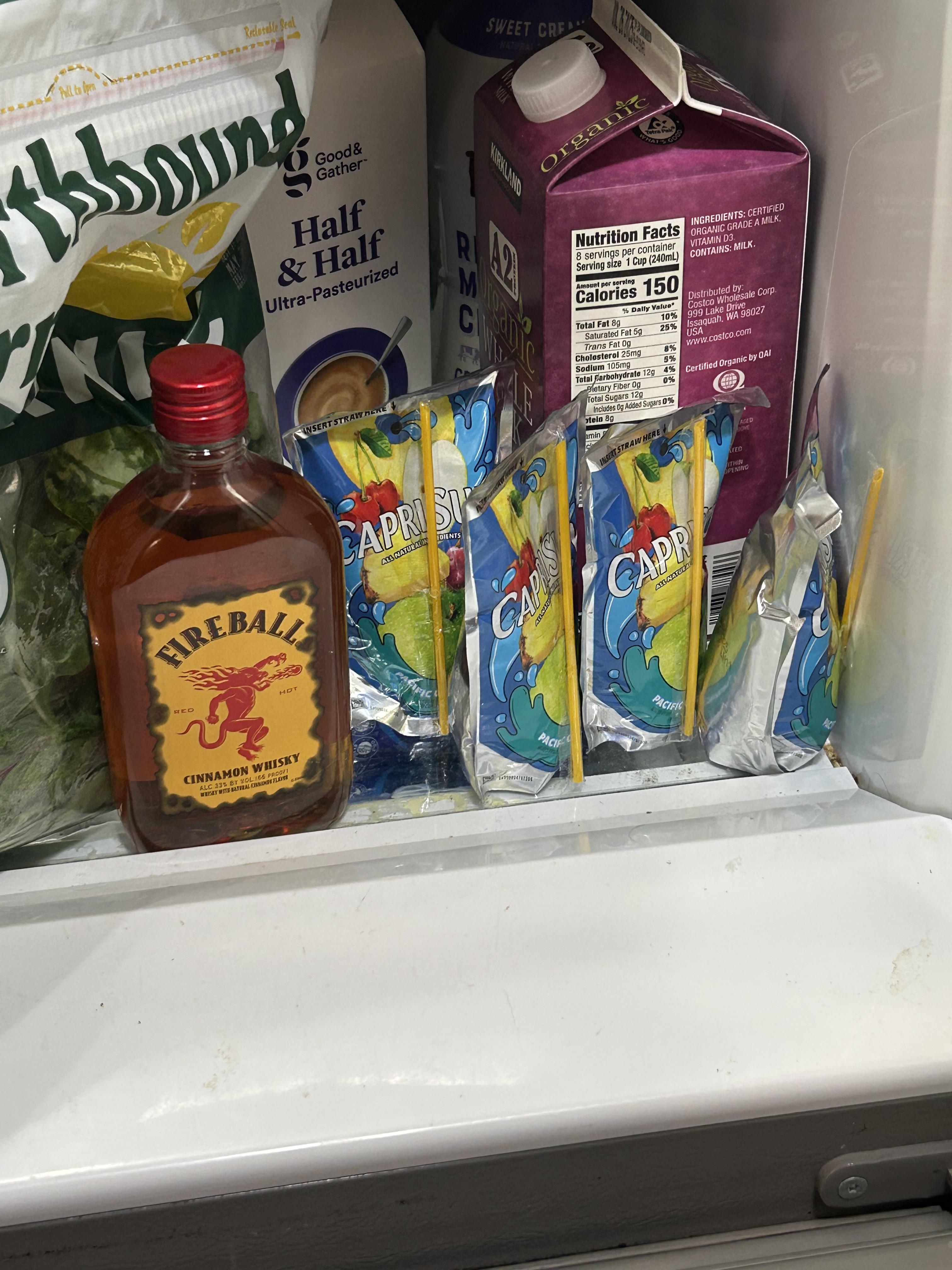 Moms juice next to my brothers juice