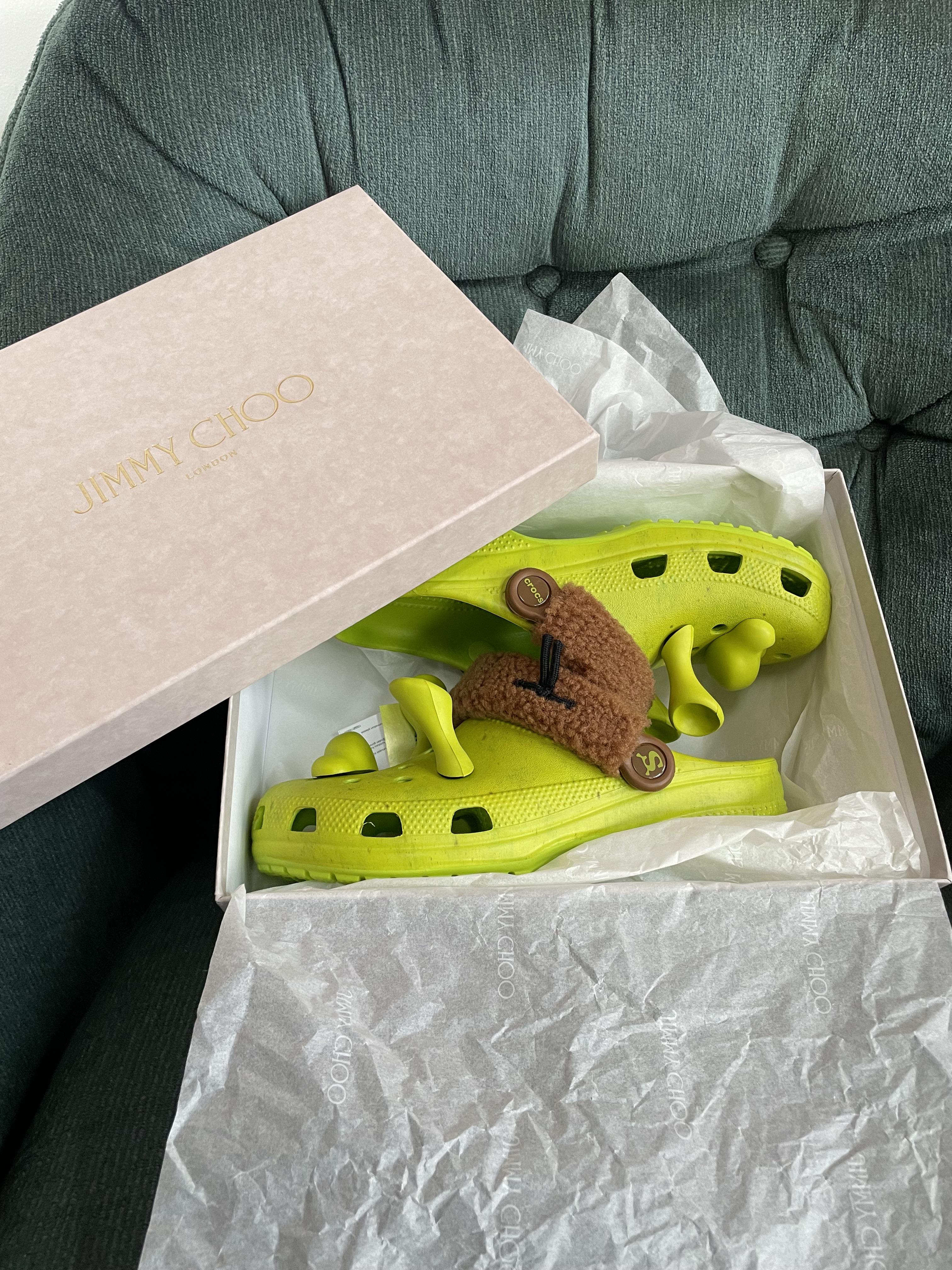 Pranked my sister with some Shrek Crocs and a Jimmy Choo box for Christmas