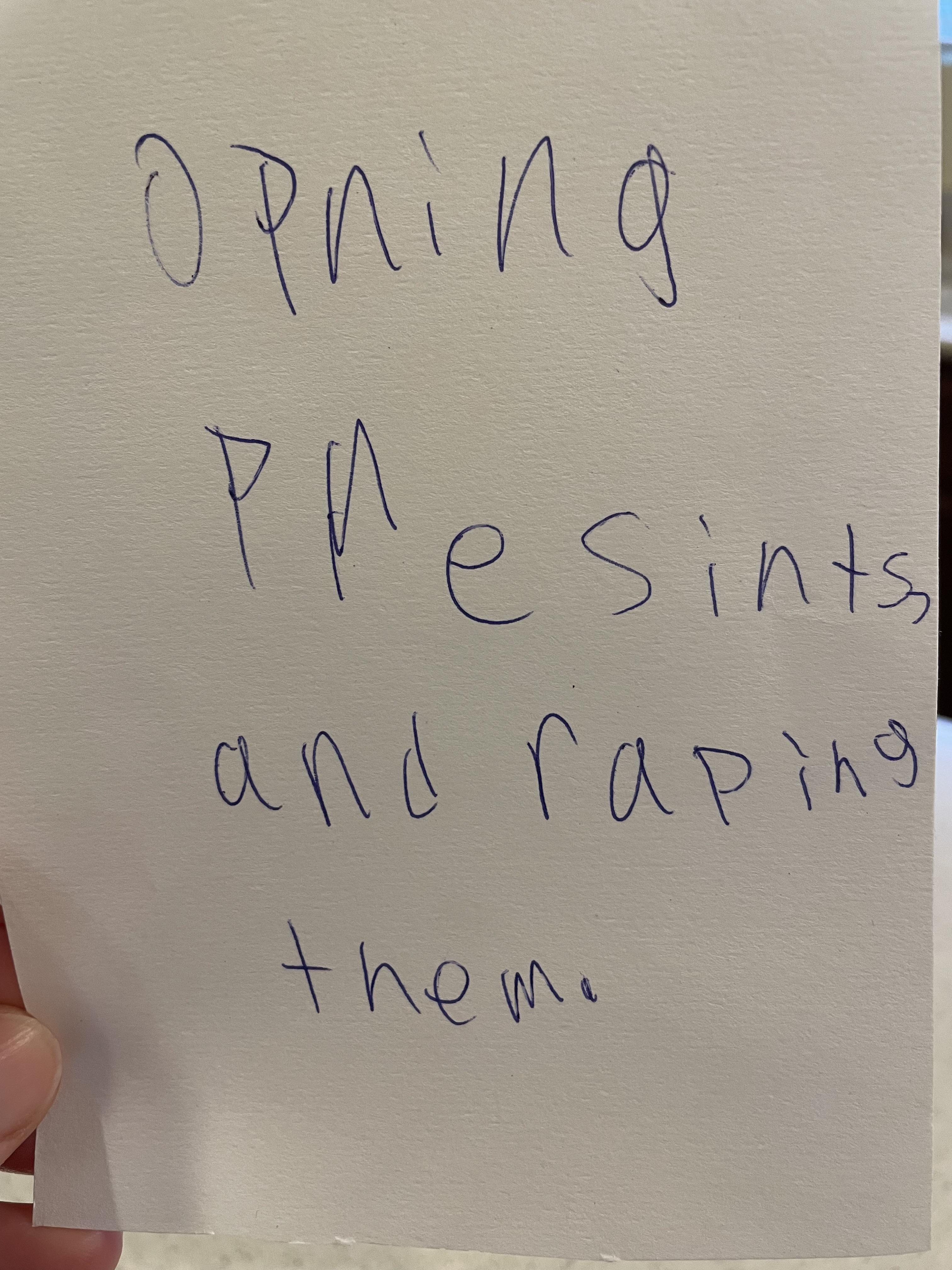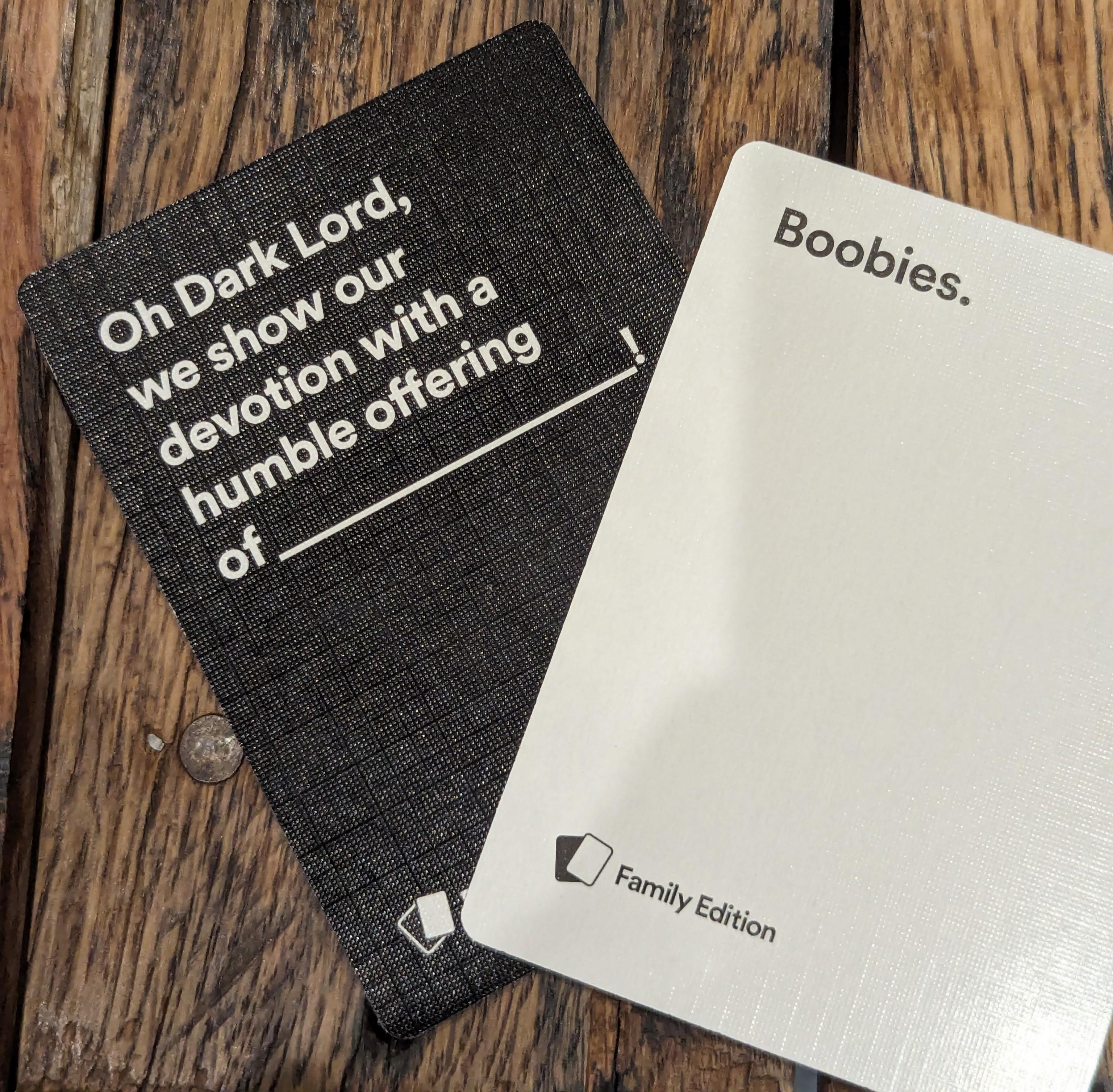Bought wife Cards Against Humanity Family Edition as an early Xmas gift. 8YO son just won this hand…he understood the assignment.