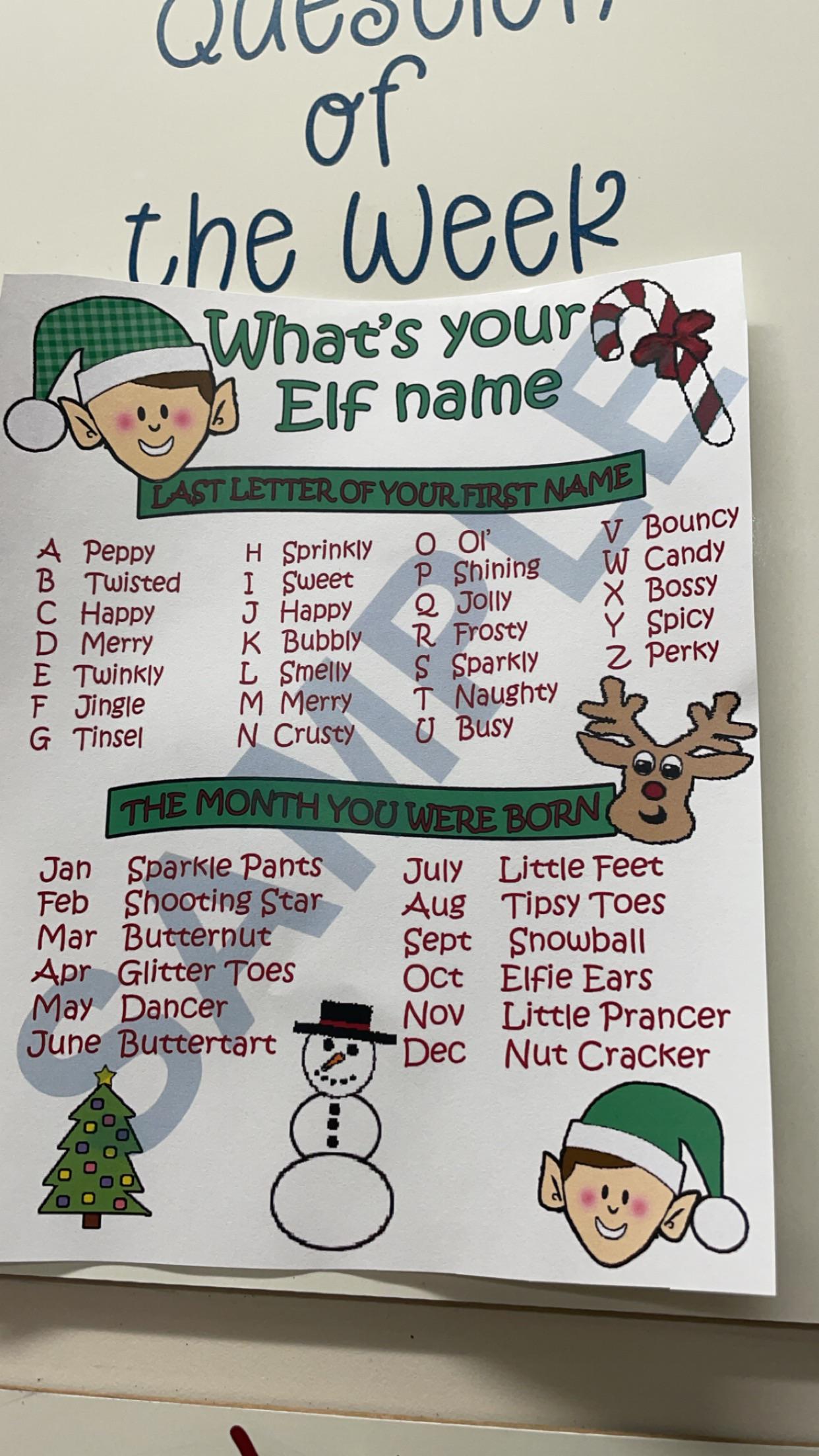 Everyone else got cute elf names and I got “crusty little feet”