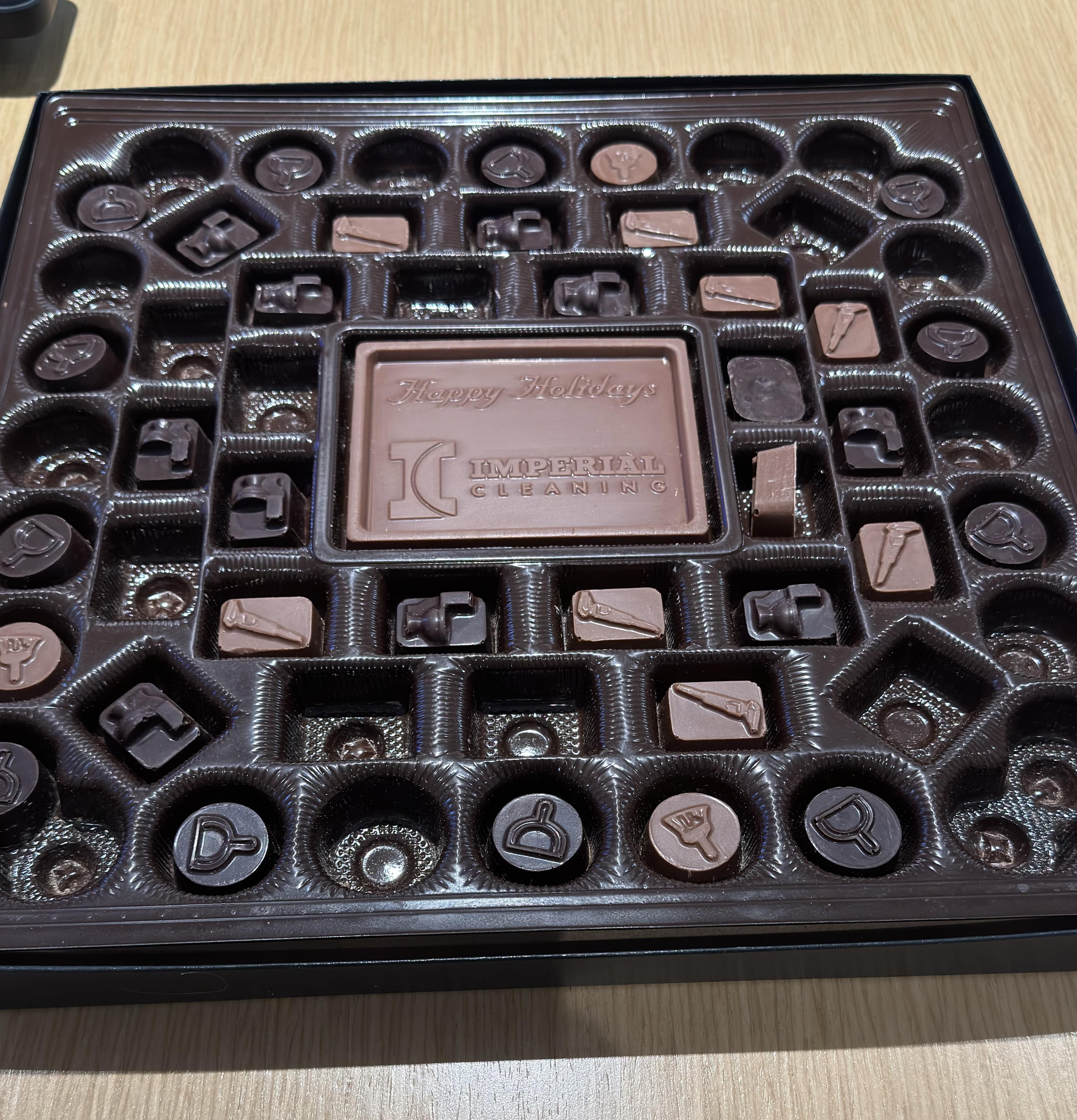 Our cleaning company at work gave us chocolate for the holidays with adequate designs