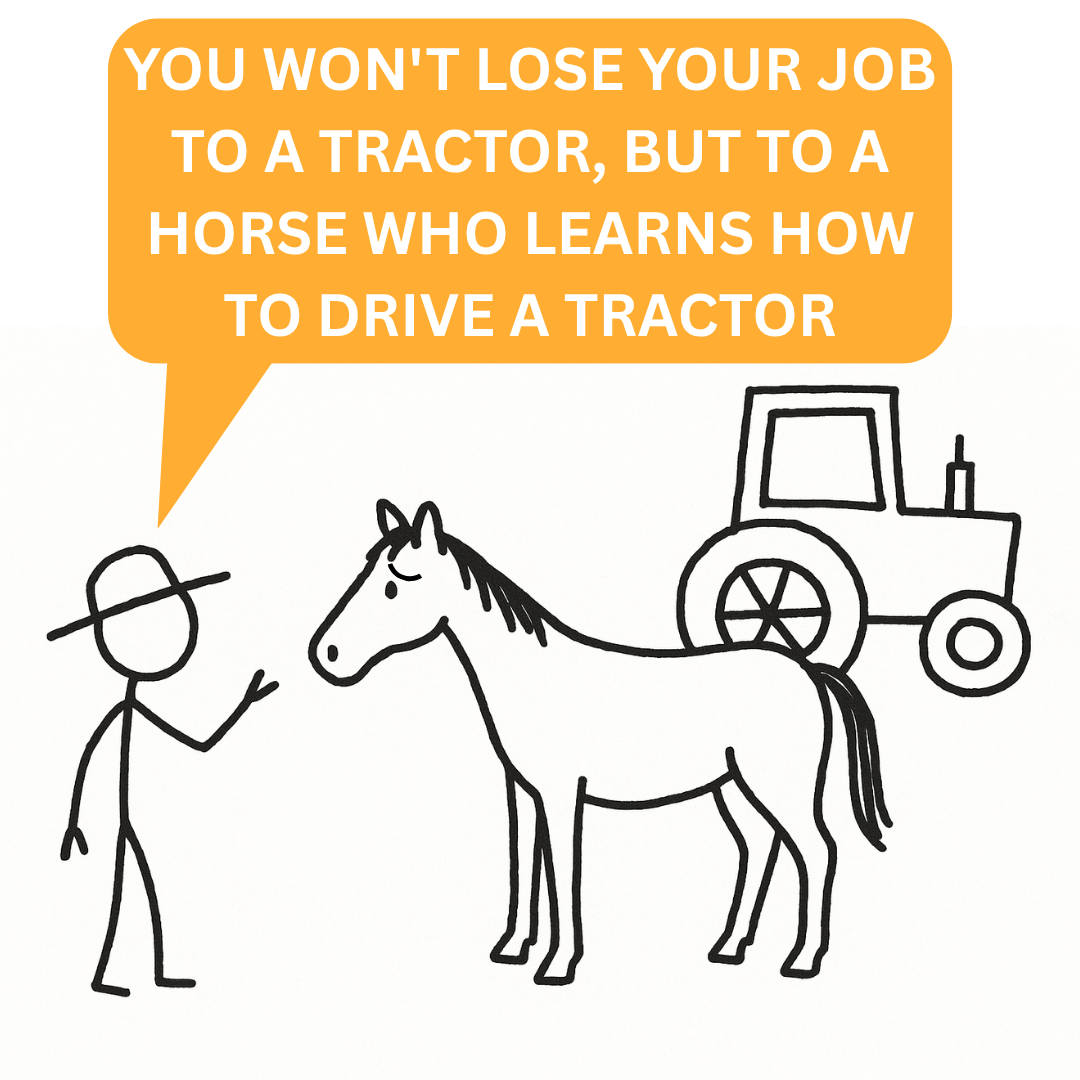 You won’t lose your job to a tractor, but to a horse who learns how to drive a tractor [OC]
