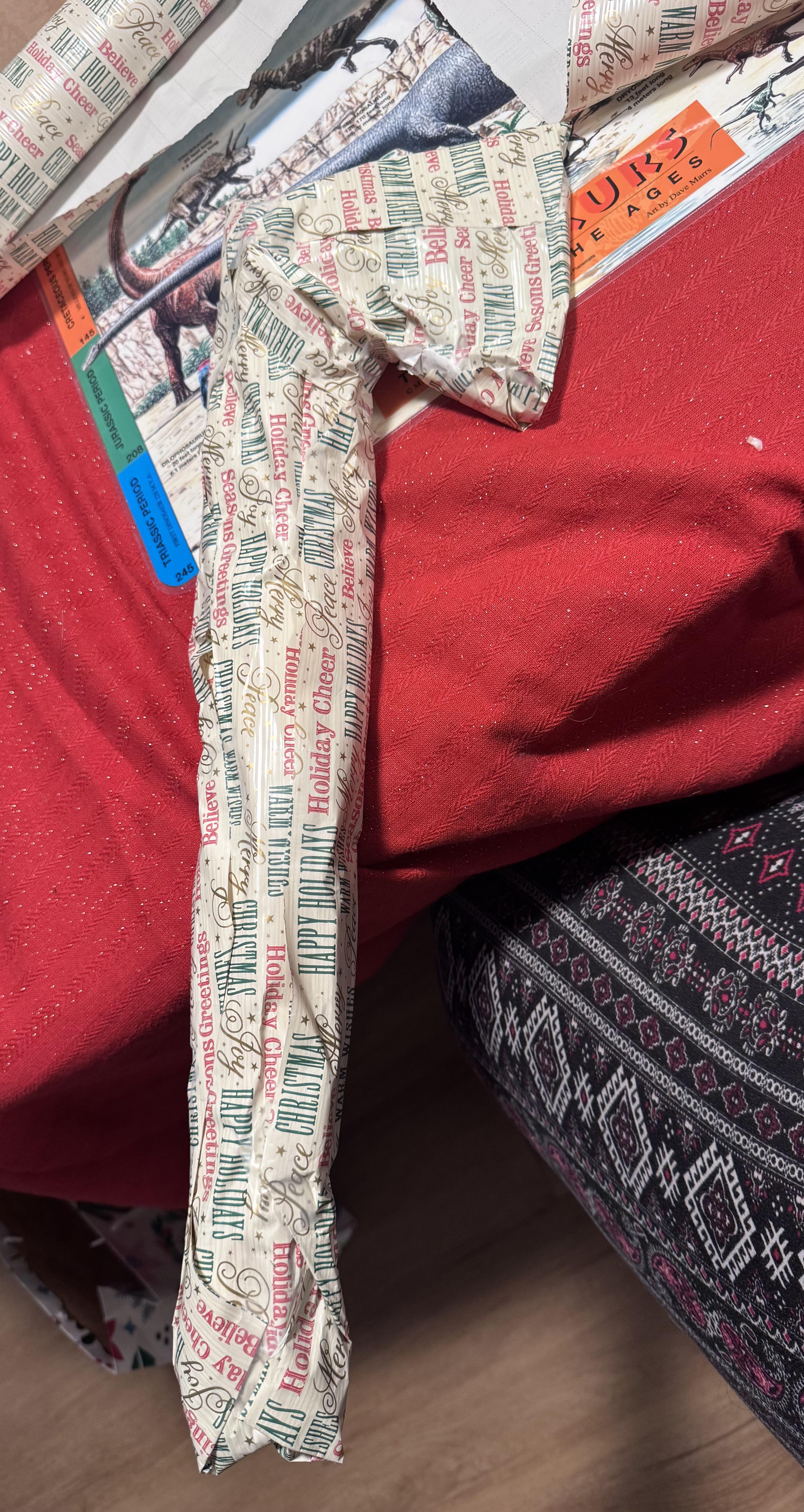 My fiancé is convinced that this couldn’t possibly be an axe, and that I wrapped it like this to deceive him, and he’s been trying his hardest to figure out what it is….. It’s an axe. Posted by December 22, 2025