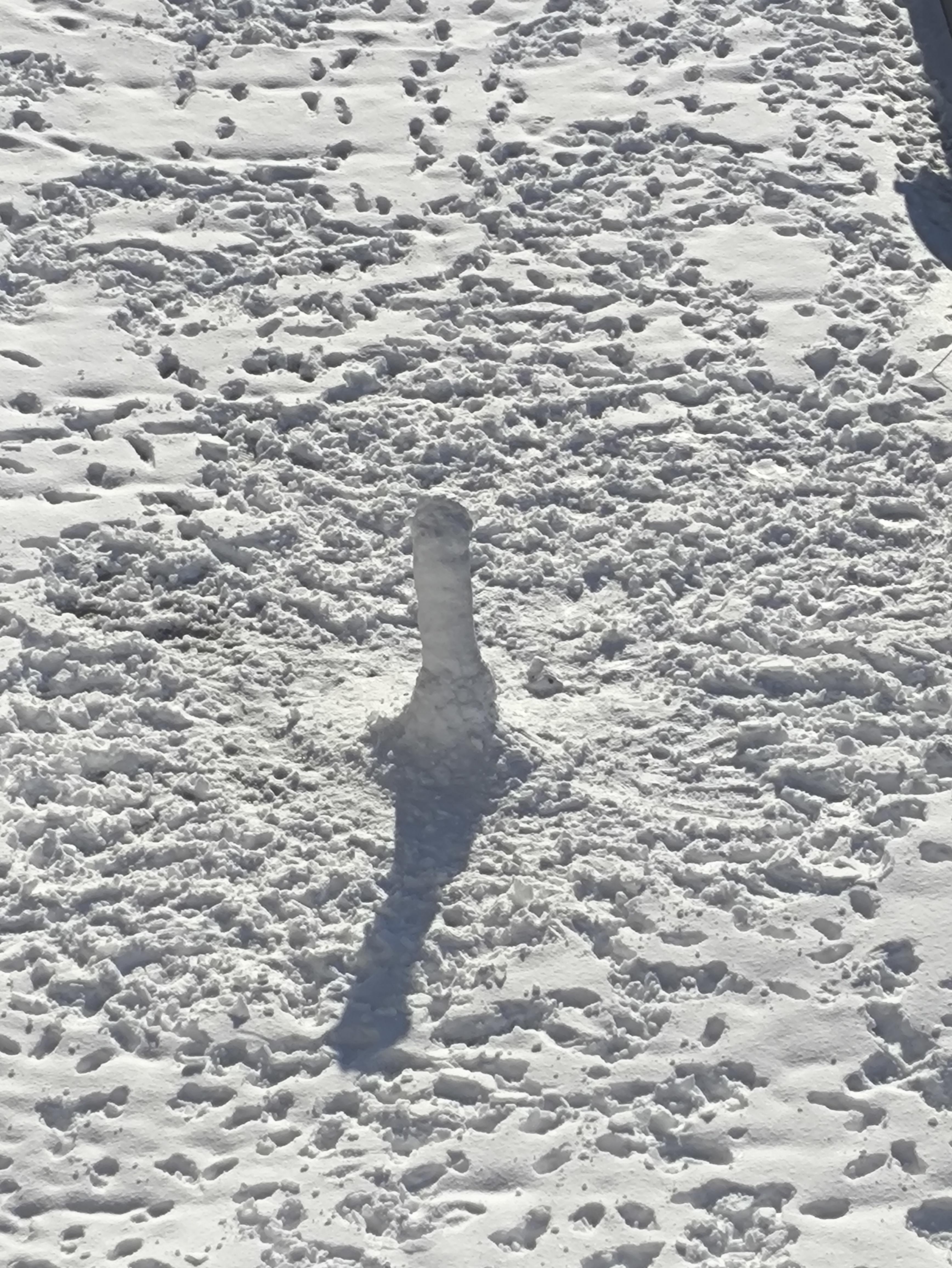 Kids have built a snowman in the morning and here is the remains of it in the afternoon
