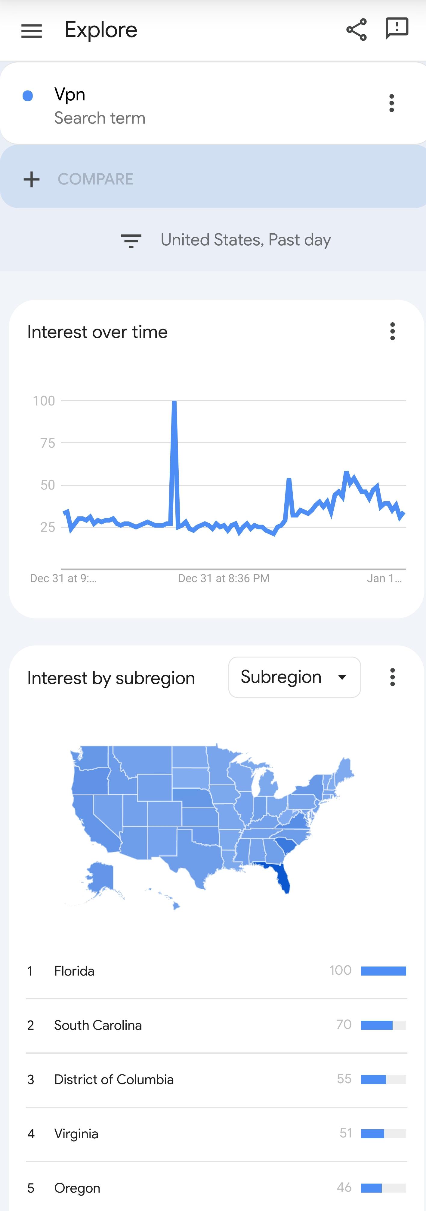 Google searches for “VPN” after new porn laws went into effect in Florida