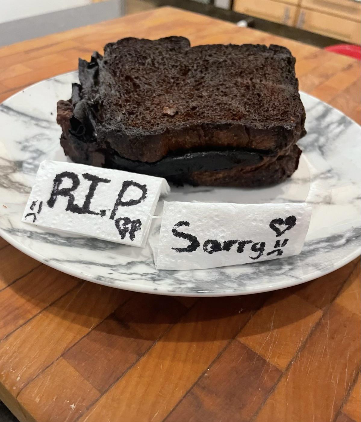 Told her three times not to forget the sandwich in the air fryer.